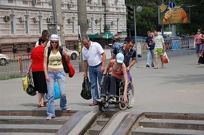 Today, as a project to promote handicapped awareness, I thought I would share my collection of bad handicapped accessable ramps from around the world. I can't believe people are actually supposed to use these. It just makes me wonder what the people who designed these were thinking.